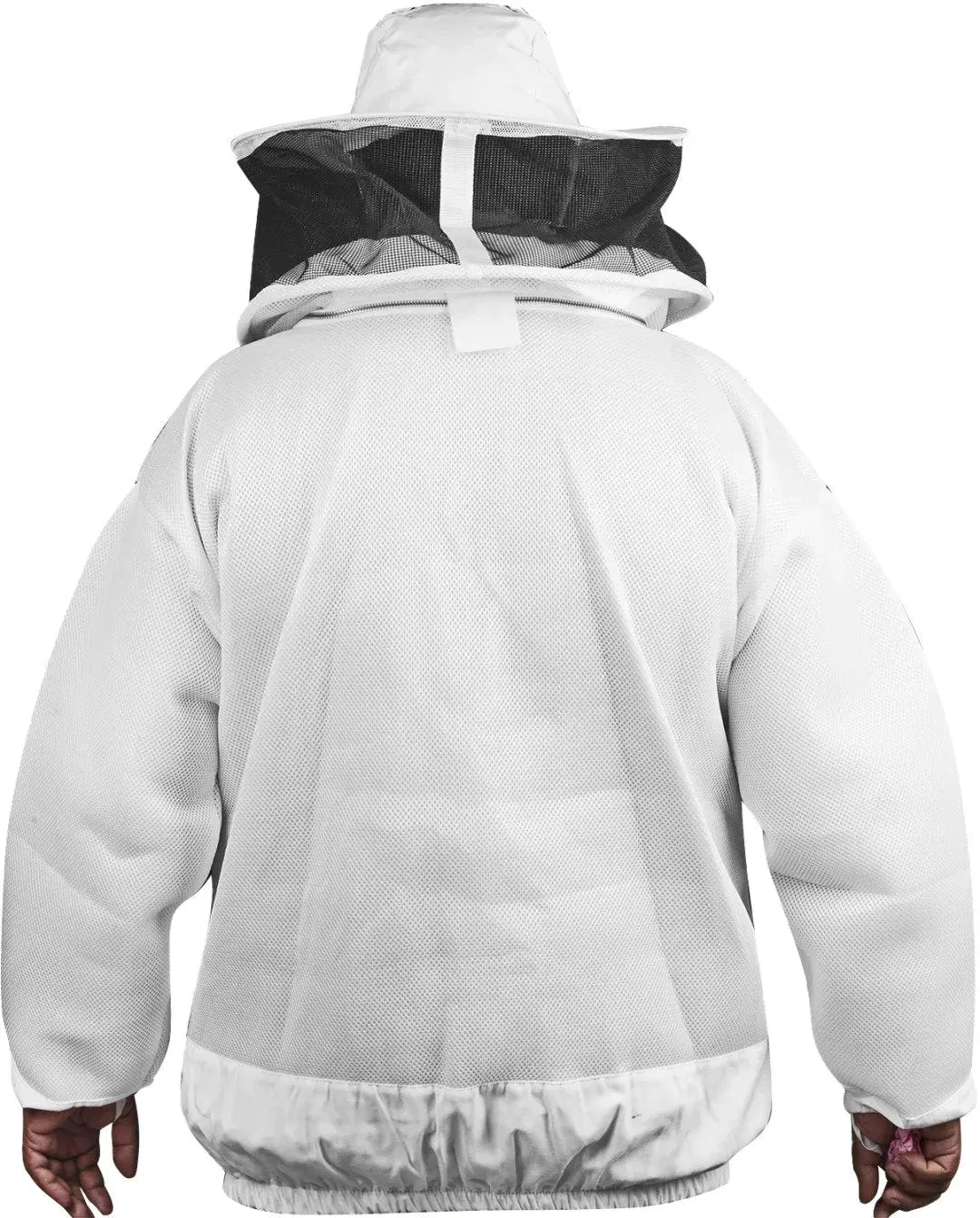 The jacket features a round veil hood that offers a wide, clear field of vision while maintaining a safe distance between your face and bees. The veil is made from high-quality mesh for optimal airflow and visibility, with a strong zipper system that allows easy removal for cleaning or replacement. Elasticated cuffs and waist ensure a snug fit, preventing bees from entering the jacket.